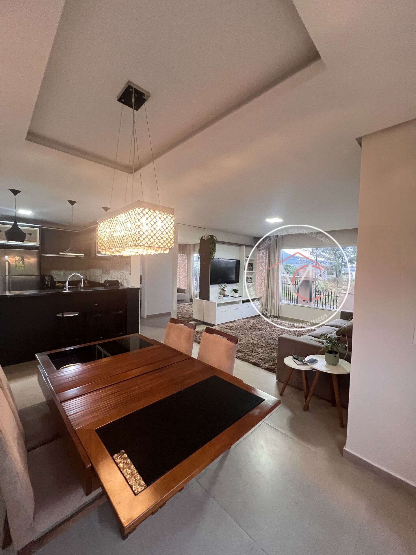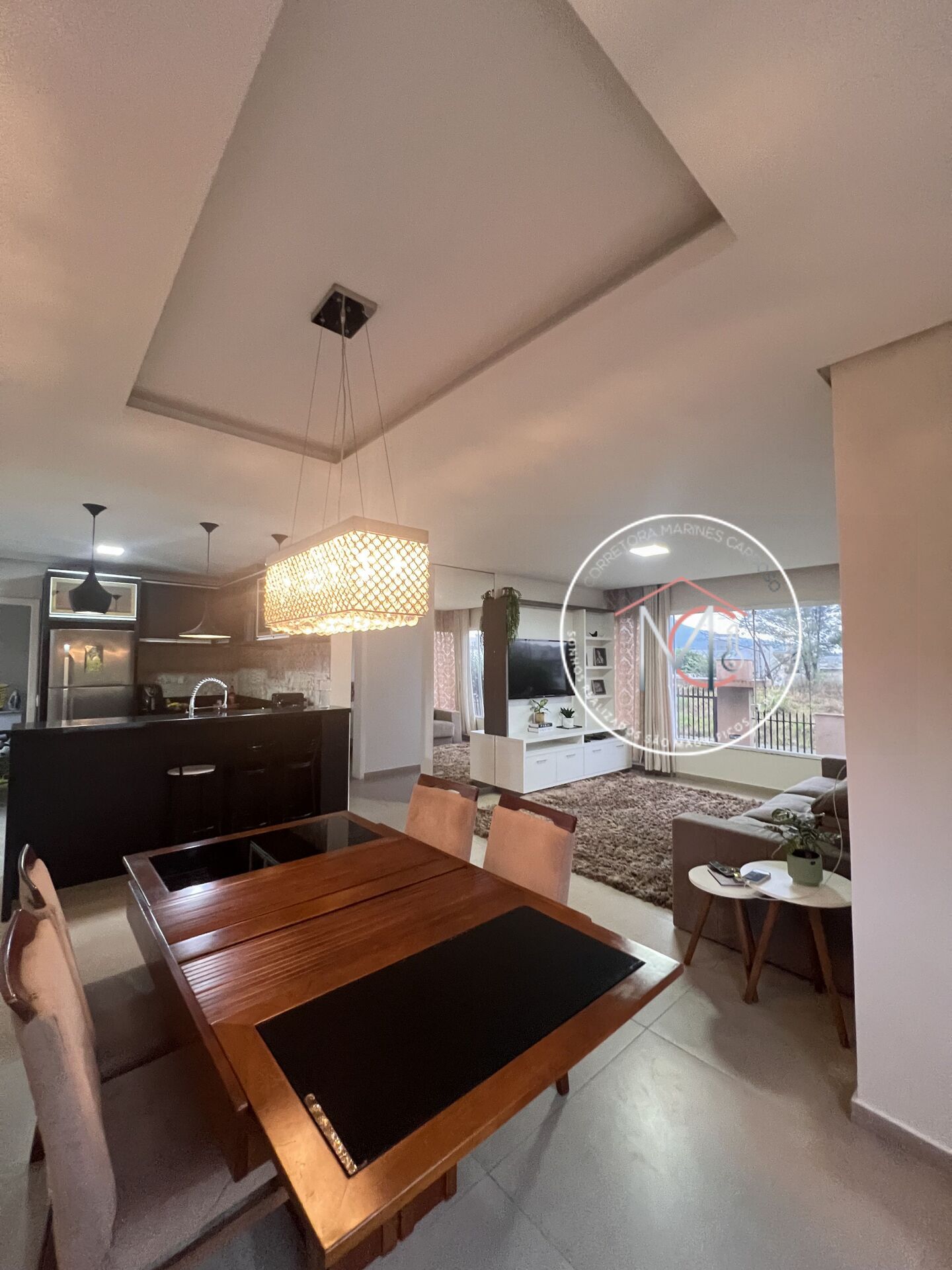 - Cozinha mobiliada com integração a sala de jantar, sala de estar, e acesso à área da piscina.
