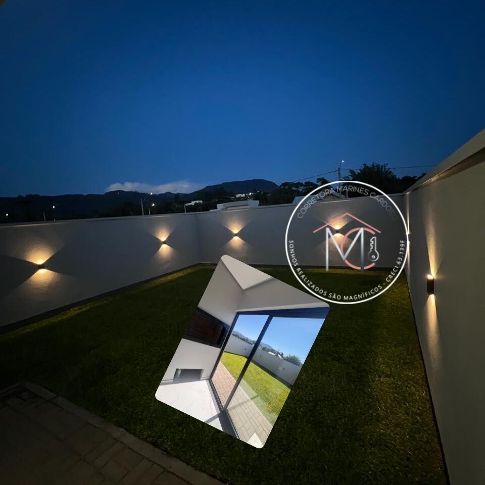 • Muros com iluminação instalado, calçadas e jardim.