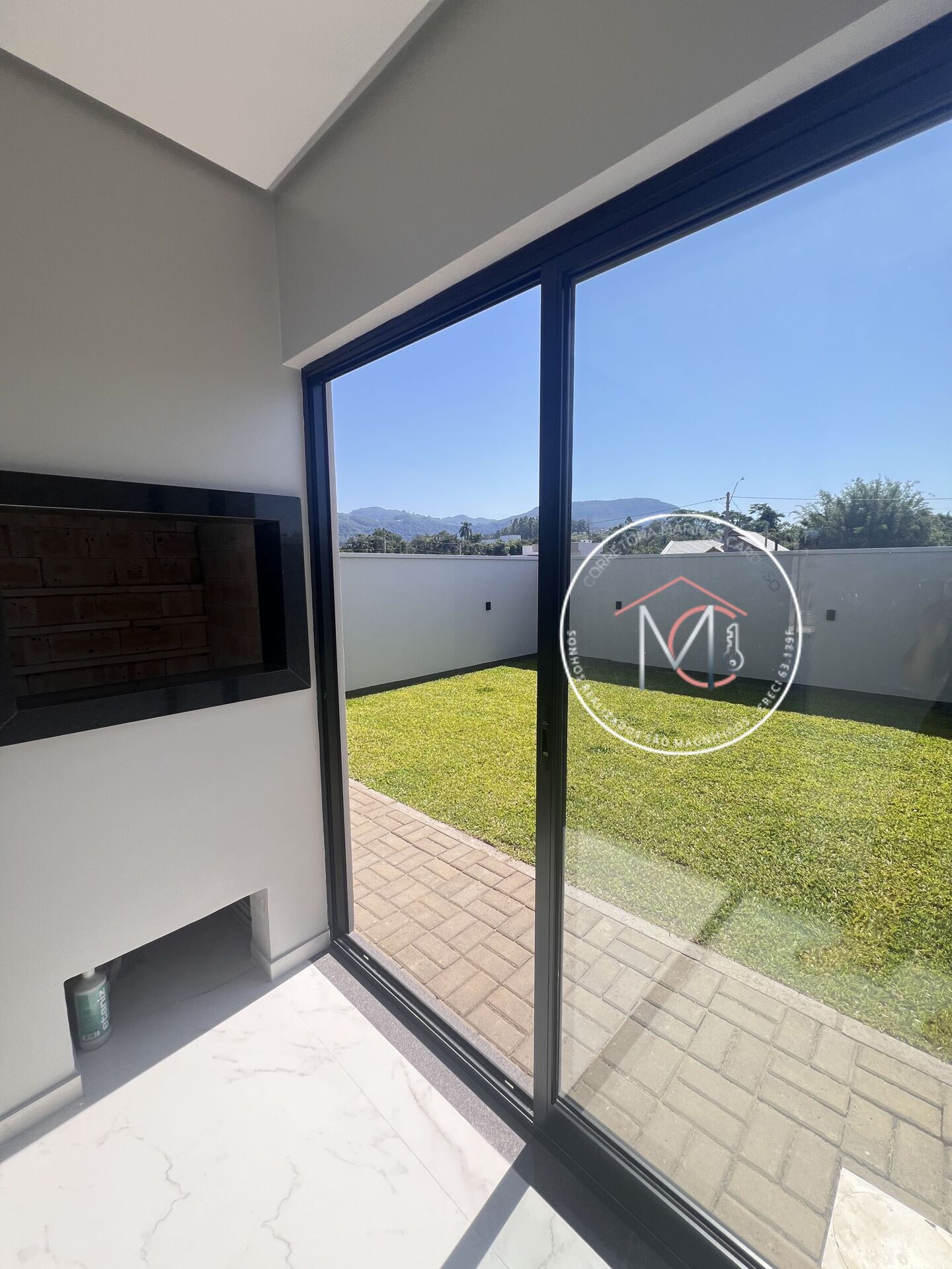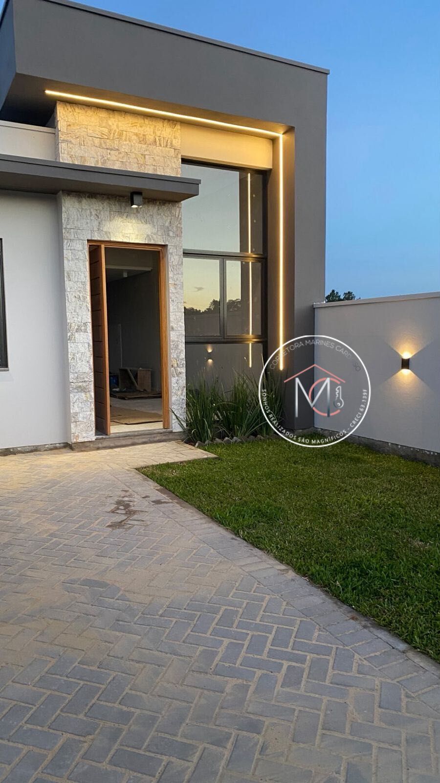 • Muros com iluminação instalado, calçadas e jardim.